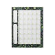 This perpetual notepad calendar features a black & white calendar grid over green foliage. The background color may be customized. The fonts and text may also be customized, as well as the boxes containing the Month and Notes, and the small green boxes for the day numbers. There are enough pages to last for 40 months.