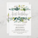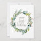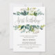 This foliage first birthday invitation card is perfect for a rustic birthday party. The gender neutral design features a boho frame of green leaves and leafy greenery botanicals. The backing features a matching country wreath which can be personalised with the name of the one year old.