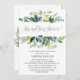 This foliage his and hers shower invitation is perfect for a rustic wedding shower. The design features a boho frame of green leaves and leafy greenery botanicals. The backing features a matching country wreath which can be personalised with the name of the bride and groom.