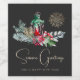 Turn any bottle into a seasonal keepsake with these wine labels featuring the watercolor green lantern, festive foliage, and falling snow on a rich black background. The layout includes space for your custom message in modern handwritten script, blending falling snow brush script with metallic gold snowflake Christmas gift elegance.