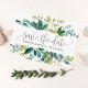 This foliage save the date postcard is perfect for a rustic wedding. The design features a boho frame of green leaves and leafy greenery botanicals.