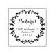 A rustic-inspired return address stamp with a calligraphic font and a foliage wreath.