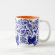 This tasteful blue and white mug, with an orange interior, was inspired by Russian and Hungarian folk art and designed by Maine based artist Katharine Woodman-Maynard.