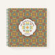 This easy to personalise recipe notebook is decorated with a pattern inspired by floral folk art styles and features spider chrysanthemums in golden yellow hues along with ornately curved green foliage and orange flowers on a brown background colour.