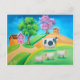 Folk art colourful cow and sheep painting postcard
