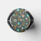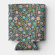 This folk art design features a pink, orange and teal floral pattern on a dark blue background.
