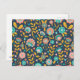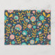 This folk art design features a pink, orange and teal floral pattern on a dark blue background.