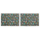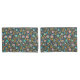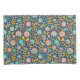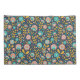 This folk art design features a pink, orange and teal floral pattern on a dark blue background.