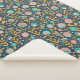 This folk art design features a pink, orange and teal floral pattern on a dark blue background.