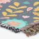 This folk art design features a pink, orange and teal floral pattern on a dark blue background.