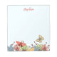 You'll love this fun folk art notepad. It features whimsical and colourful flowers and two beautiful butterflies against a faint light blue background to symbolise a peaceful spring or summer day, Personalise it with your name or the name of a friend or loved one in a pretty script.