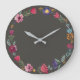 Beautiful folk art flower wreath surround the edge of this black faced wall clock