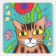 Cute folk art style stickers with a cute grey cat and flowers. This art is AI generated. Pretty red, pink and white flowers. generativecontent