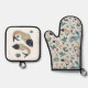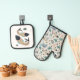 Folk art mitt and fish art pot holder oven mitt & pot holder set