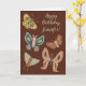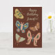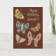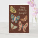 This pretty card is perfect for birthdays or any occasion since both the message on the front and the message on the inside is ready to be customised with your own text. This card features folk art style illustrations of moths in warm earthy colours of brown, pink, yellow, green and blue set against a rich brown background.