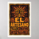 Folk Art Poster Sun Face Bold Block Print in