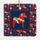 Folk Art Red Swedish Dala Horse and Pattern Photo Ceramic Ornament