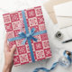 Folk Art Stenciled Heart Pattern Red and Pink Wrapping Paper
