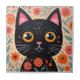 Folk Art Style Black Cat Ceramic Tile