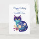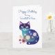 Cute purple and blue folk art style cat and flowers personalised birthday card for a niece.
