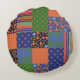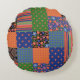Folk Art Style Faux Patchwork Round Throw Pillow