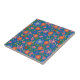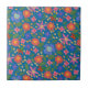 Folk Art Style Floral on Blue Ceramic Tile