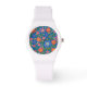 Folk Art Style Floral on Blue Sporty Wristwatch