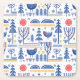 Folk Art Winter Bird Pattern Square Paper Coaster
