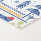 This folk art design features a woodland winter scene with birds, snowflakes and trees.