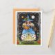 FOLK ART WITCH IN SPOOKY WOODS, BLACK CAT & OWL HOLIDAY POSTCARD