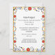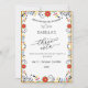 A floral Fiesta birthday party invitation featuring watercolor flowers celebrating Cinco de Mayo day with maracas, and a sombrero with a text saying Cinco de mayo, Three-esta. A cute and colourful folk art with script typography is a perfect combination to celebrate the 3rd birthday in folk style.