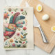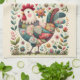 Folk Patchwork Rooster with Floral Accents Tea Towel