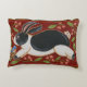Get this modern piece of artwork today with a brown and red background. This piece of art contains a black and white rabbit which appears to be running. The details in this image are very sharp and vivid. It's a contemporary art piece that will be perfect for any type of folk theme you are trying to go for.