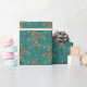 A whimsical pattern featuring leaping brown rabbits surrounded by yellow, pink, and red flowers, green leaves, and dotted accents on a teal background.