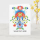Stylised, Mod and Folksy images on an all-occasion greeting card. A vignette with folksy birds, carnations, daisies, butterflies and hearts for a pretty folksy look on a snow white background. Customise the cover and interior for your custom message or sentiment.