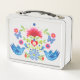 Stylised, Mod and Folksy images on a lunch box. Folksy birds, carnations, daisies, butterflies and hearts for a pretty folksy look on a snow white or coloured background. Choose from several background colours. Reduce the product image for a customised message or sentiment.