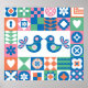 Folklore charm and floral grace in an abstract card pattern.