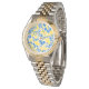 The watch is very nice, the picture is great and the watch looks like quality. The only problem I am having with it is that it is a little too large, and I also can't figure out how to open the clasp. No directions came with it. Very good. The printing is perfect and the watch keeps good time.