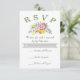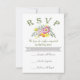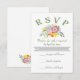 Folklore pink flowers modern floral wedding RSVP reply/response card featuring pretty vintage style flowers in pink and yellow with green leaves, a grey banner and curved text with a whimsical font that looks like handwriting. This fresh and trendy template design is part of a wedding set and is completely customisable. Perfect for a rustic country spring or summer wedding.