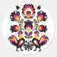 Folklore flowers and black, pink and yellow roosters composition from Lowicz (region in Poland). Folklore sticker and envelop seal. Nice as a gift for someone who loves folk art and unique things