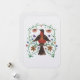 The hand-painted artwork on this card depicts a folksy, dutch-style portrait of a robin resting in a flower patch.