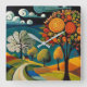 Folksy country scene wall clock. Pretty vibrant colours. Folk art fun!