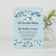 Folksy pale blue and white floral wedding invitation with with charming fonts against a pale blue background. Floral wedding invitation with pretty blue and white flowers in a hand drawn folk style for summer weddings or folk weddings. Blue and white wedding invitation with simple floral illustrations in blue and white and dark teal.
