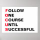 Motivational typography quote poster with text 'Follow one course until successful'. The text is in black colour over white background. The word "FOCUS" is in red bold capital letters. You can change the font style, size and the background colour if you want to.