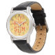 This whimsical wristwatch design has pretty orange and yellow, painted typography that says, "I'll Follow the Sun." It's perfect for long summer days on the beach. The watch numbers are thin, Art-Deco-style black. Pick your own watch style.