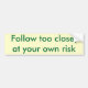 There are a lot of people that follow way too close. It is so-o-o-o annoying. I thought that I'd make this to say, back off or I'm not responsible for what I may do. Durable 4mil thick vinyl, won't peel off Water resistant inks won't run in the rain or fade in the sun 11" x 3" - should be large enough to fit any message