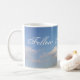 Follow your dreams coffee mug | White clouds and blue sky design. Inspirational quote for work or home. Elegant script text.