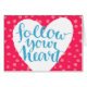 Brush lettering quote follow your heart at pink watercolor background. Vector pink card design with modern typography. | Bigstock® - All Rights Reserved.