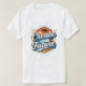 This motivational graphic design features the inspiring quote "Create Your Future" in a bold, layered 3D typography style. The text is set against a vibrant orange hexagonal backdrop that depicts a scenic mountain landscape under a sunset sky. The design incorporates retro-inspired elements like star accents and radiating lines, giving it a dynamic and energetic feel. It is designed as a centerpiece for modern men’s casual T-shirts, aimed at those who value self-empowerment and proactive living.