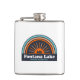 The flask itself is fine. It’s a cheap flask, obviously bought in bulk, however am prepared to overlook that. Given that it is a personalized item, I would have liked to have seen gift boxing instead of the generic packaging. Terrible printing, and/or quality. It’s a cheap, tacky vinyl. It is not cut straight and is also applied in a way that it is overhanging the bottom, causing the glue to catch on items and it will eventually roll and tear, damaging the wrap.